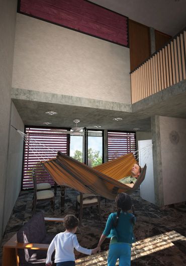 El módulo de vivienda surge como respuesta a la problemática de una vivienda de calidad y asequible. La solución a través de métodos constructivos de la región y la elección de los materiales contribuyen a lograr el objetivo. El espacio de la vivienda es enriquecido a través de su calidad espacial y de las visuales. El módulo se complementa con las áreas comunes hacia al exterior, mismas que unifican y dan coherencia al conjunto. Cada vivienda consolida áreas privadas y de servicios en un bloque, dejando un gran corredor que conduce los vientos y logra una ventilación cruzada de los espacios.
